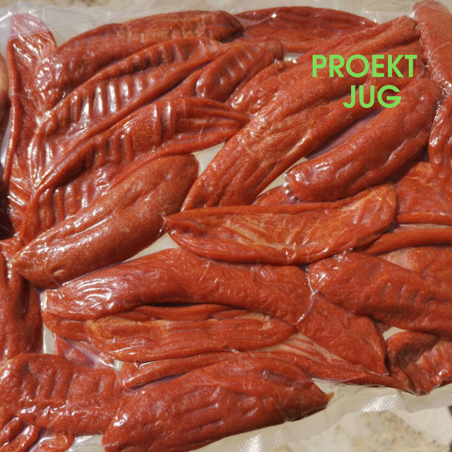 Ікра добре підсушена, розміщена в натуральній сумці. Фасується у вакуум пакет по 500 грамів. Готовий до вживання як самостійна страва або закуска до пива. В міру солона.
